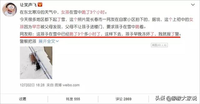 此前,长春有个小女孩被罚跪在雪地中3个多小时,原因竟是被父母发现早恋。