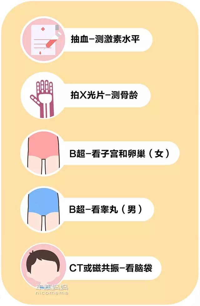 医生会问病史及家族史,做体格检查(检查乳房、睾丸等发育情况),并结合各项检查来确诊孩子有没有性早熟: