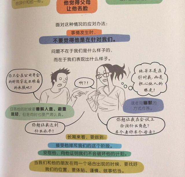 《正面管教图解版(13-18岁版)》里提到了27种叛逆行为,并且解析了原因,描述了父母的应对方法。就拿孩子顶撞父母,跟父母对着干来说,虽然孩子确实把父母当成了发泄的对象,但是书里着重提出了一个黄金准则——不要认为孩子在针对我们。