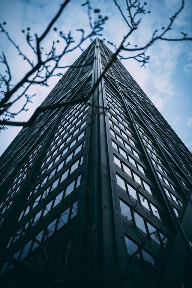 芝加哥第二高楼John Hancock Center,玻璃桁架包裹着的冷艳造型。