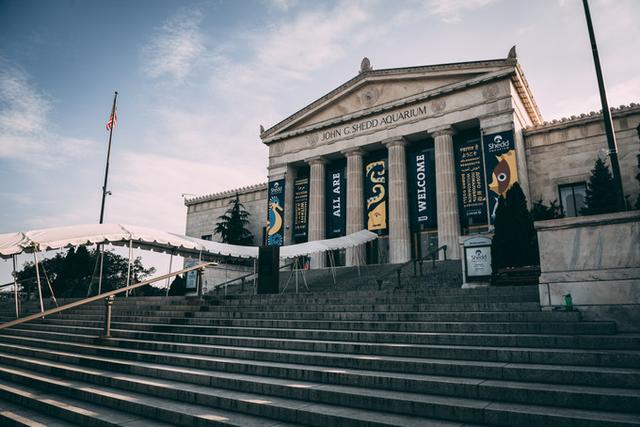 在湖边流连良久后,我们前往水族馆(Shedd Aquarium),门口的标志充满了童趣。
