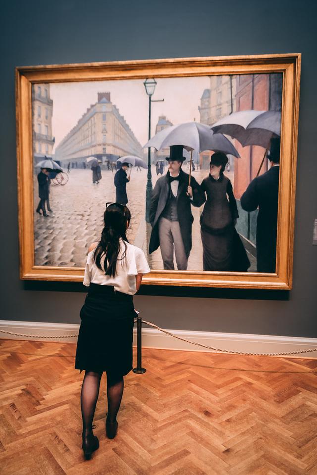 芝加哥美术馆的几件镇馆之宝其一:《雨天的巴黎街道》。原画尺寸超大,可以近距离观看笔触细节和精妙的色彩变化,可以从不同视角揣摩画家的构图技巧—我想,这就是我们要逛美术馆、而不是在印刷品和电子屏幕上观赏名画的原因。