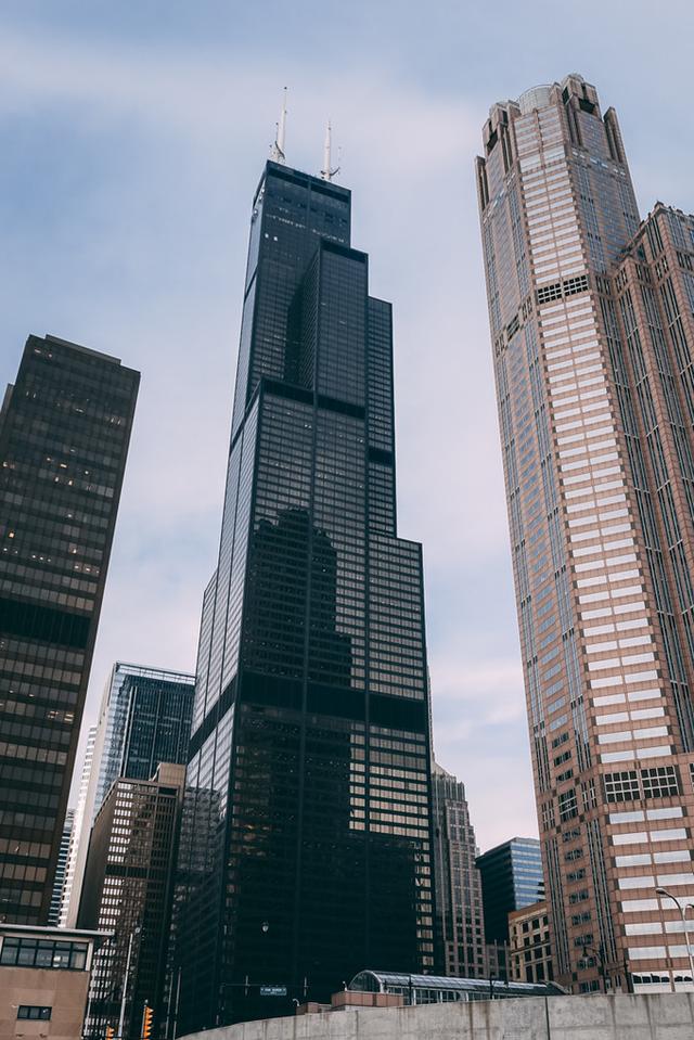 从前的全球最高楼西尔斯大厦,现已改名成威利斯大厦,仍然是西半球最高楼。