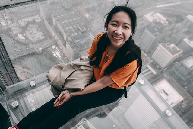 作为当天第一批到达观景层的游客,我们直接冲进透明玻璃“小盒子”,畅享五分钟拗造型时间。我们离开时,这里早已排起了长长的队伍。
