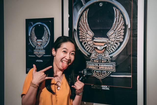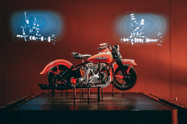 一楼展厅展出了数十辆不同年代不同款型的哈雷摩托车,充满工业风格的空间中,车队气势浩大,恰到好处的灯光烘托出车身上每一个维护得锃亮的细节,让我们不禁惊呼:“帅气!”