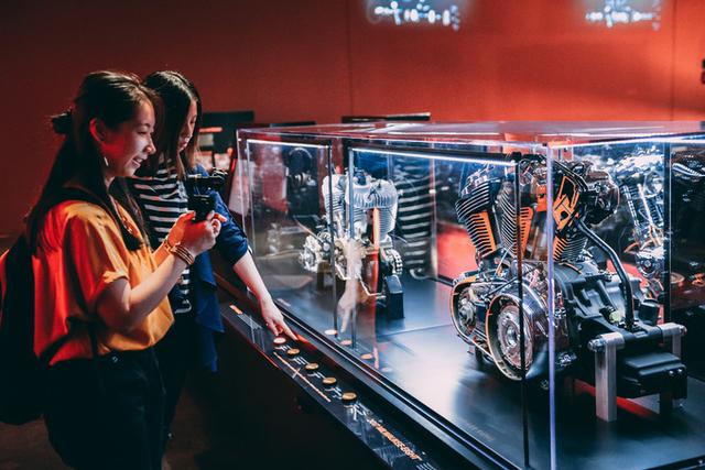 二楼展馆全面底展示了哈雷的发展脉络,既有实物展出,也有设计图、老照片等历史原件,还可以通过录音来感受不同版本哈雷引擎的轰鸣。