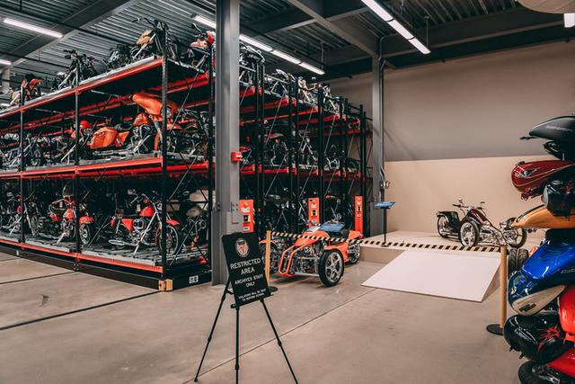 博物馆三楼是一个不对外开放的仓库区,我们隔着铁门窥探储存了上百辆哈雷的库房,深感震撼。