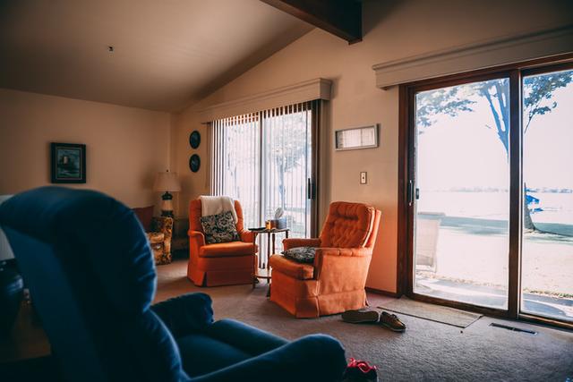起居室是典型的美式风格,迈步即可走到亲水湖岸。