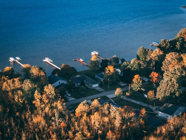 这一天恰逢中秋节,肖诺湖的清晨晴朗无云。国内此时已是中秋月圆夜,在此起彼伏的节日祝福声中,我们在后院放飞无人机,鸟瞰秋日童话般的湖畔风光。