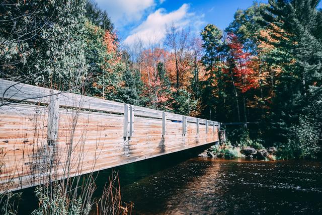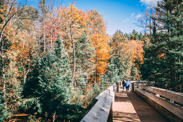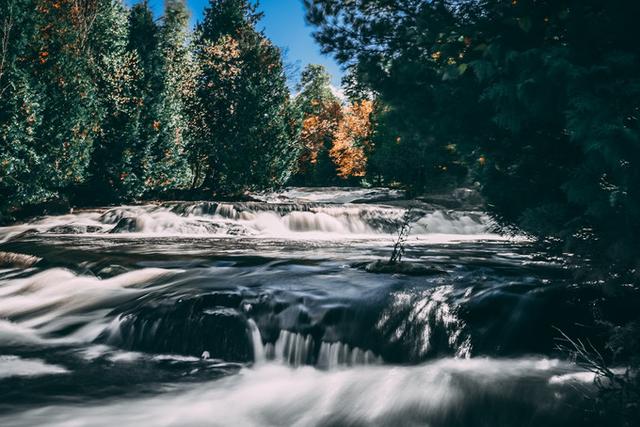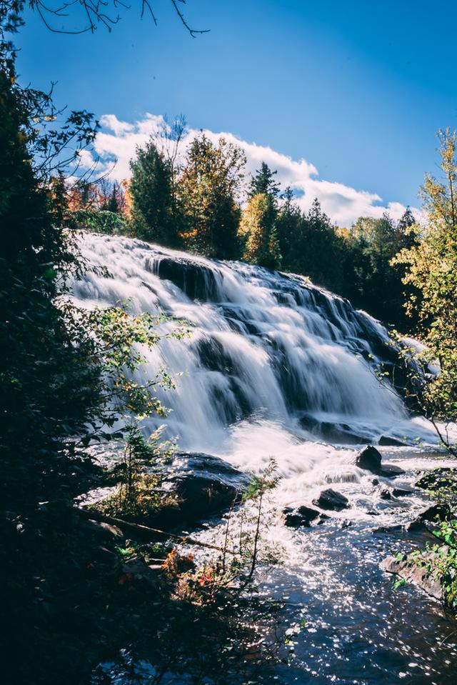 邦德瀑布(Bond Falls)是北密秋色的浓缩精华。它隐匿在主路下的山谷中,静静等待着有缘人的探访。