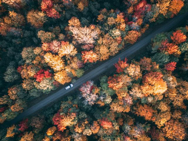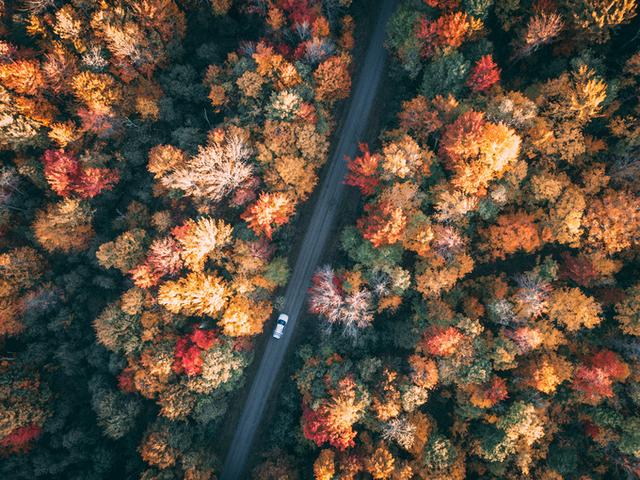 漫山红叶映衬着腾空而起的Mavic,真是激动人心的画面。
