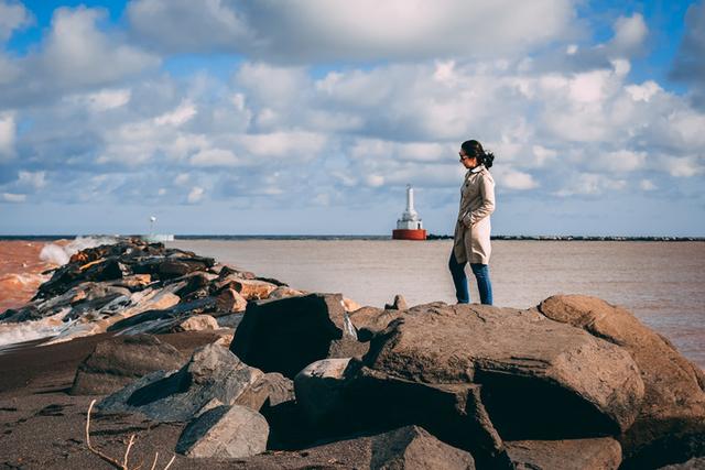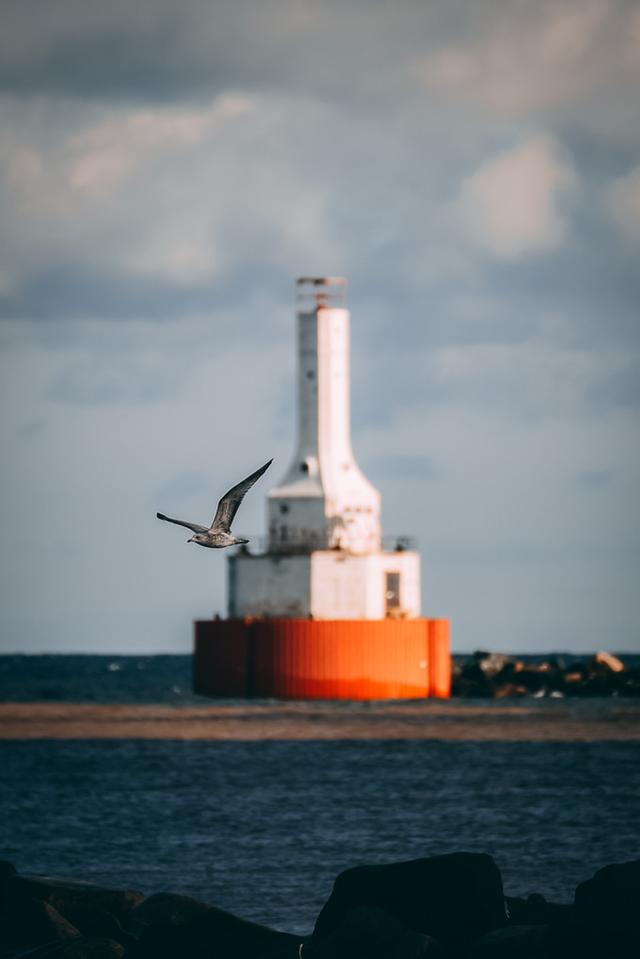 这里是霍顿河(Houghton Canal)注入苏必利尔湖的地方,一片萧瑟的滩涂,不知被湖水冲刷了几千年的礁石,孤零零的灯塔,狂风中滑翔的海鸟,组成了一幅天涯海角般的图景。