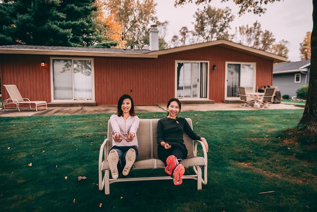 离开前,与寄宿两晚的湖边小屋合影。