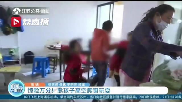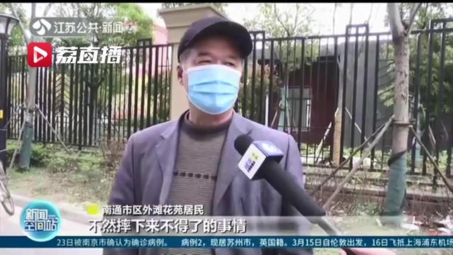 南通市区外滩花苑居民说:“像这种情况很危险,家长必须重视高度重视,不然摔下来不得了的事情。”