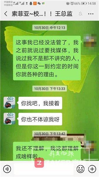 "合同里关于退费的条款很清楚,我们理由很充分,但学校违反合同没有按时退费。"张先生说,起初校方态度还可以,给了一部分,之后就开始拖,说招生不好,学校缺钱等等各种理由推脱。"后来就像挤牙膏一样,一点一点给多则 2000 元,少则 500 元,而且态度越来越恶劣。我媳妇求爷爷告奶奶,最终还剩 4000 元学费没有退。"张先生说,他忍无可忍,于是想要向媒体、消协投诉,王校长知道后,却满不在乎的说:"你找吧,我接着!"