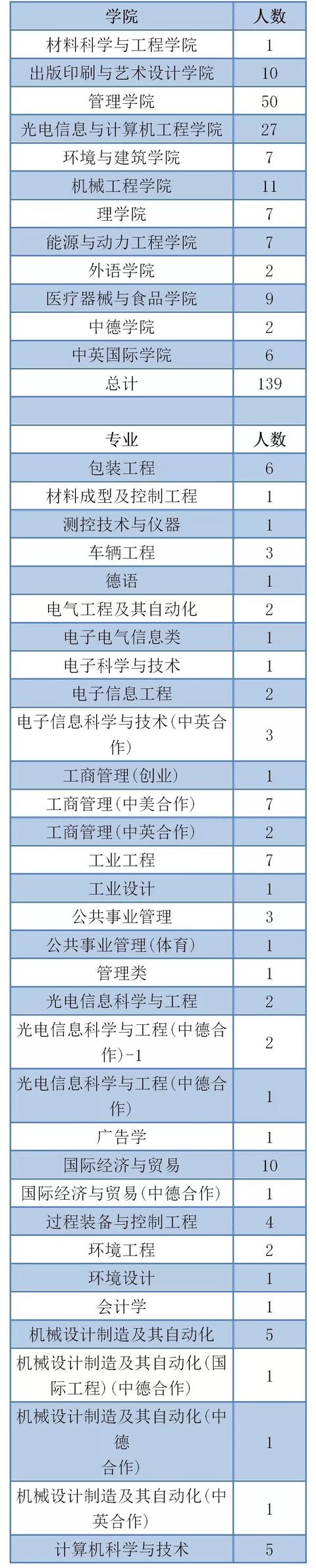 3.经统计,这139人分布在12个学院,50多个专业,具体的人员分布如下表所示。
