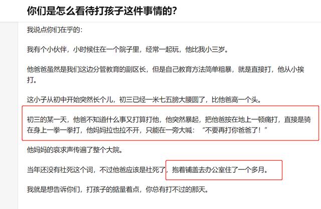 而这个管教育的副区长也觉得自己的教育方法很好呀,孩子打一顿就听话了,这样的局面到了孩子初三的某一天出现了反转。