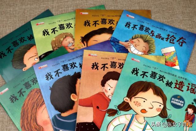 这套绘本共8册,包括了《我不喜欢被嘲笑》《我不喜欢被乱摸》《我不喜欢被使唤》《我不喜欢被造谣》《我不喜欢东西被抢夺》《我不喜欢被推搡》《我不喜欢被起绰号》《我不喜欢被排挤》。