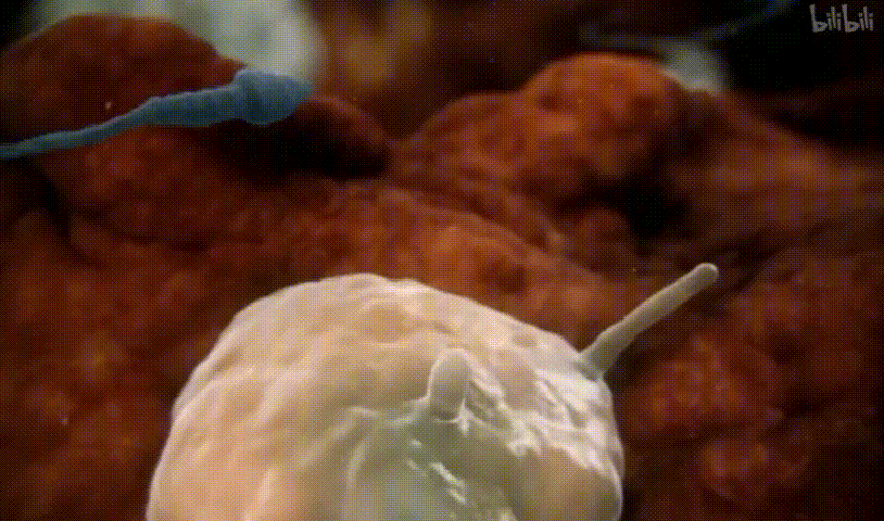 第三层关卡:卵子。长途跋涉的“幸运精子们”终于来到了心心念念的卵子面前,进入它的体内。但是卵子的壁膜非常厚,并没有那么容易进去。于是,精子们搁置了个人的利益,齐心协力渡过最后一道关卡。
