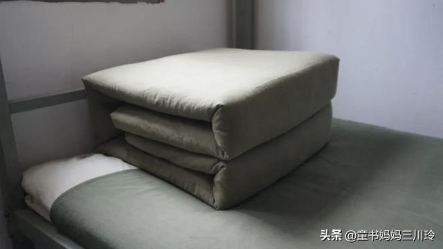 ▲叠成军被的被子,被称为孩子在“丑小鸭”的第一件作品