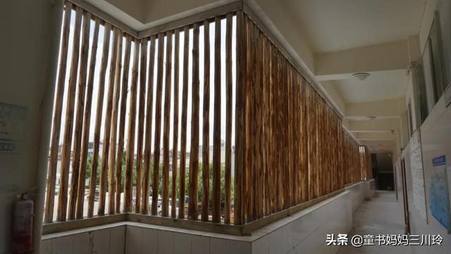 ▲在丑小鸭的新校区,教学楼走廊的铁丝网改成了圆木栅栏