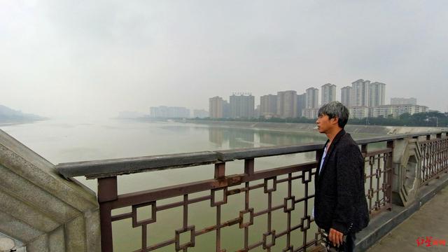 宏宏父亲谢颖站在岷江二桥处远眺