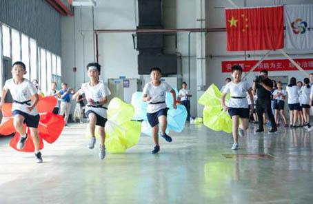 营员体验降落伞阻力赛跑。郭丽娟 摄