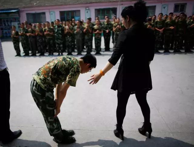 下午3点左右,教官终于对一个十几岁的男孩不耐烦了,他攥紧拳头,朝这个咯咯笑的男孩胸口打了一拳。