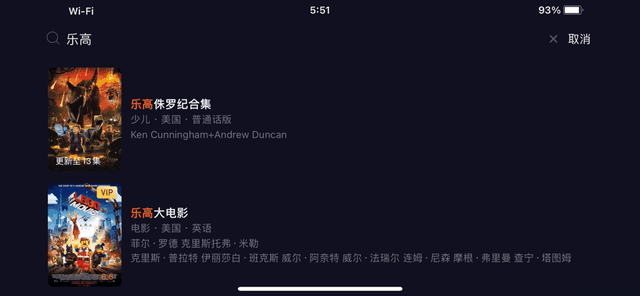 而且搜索出来的内容,也都还是孩子适合的内容。比如我搜索“乐高”的时候,会出来乐高相关的动画和电影,都是比较适合孩子看的。