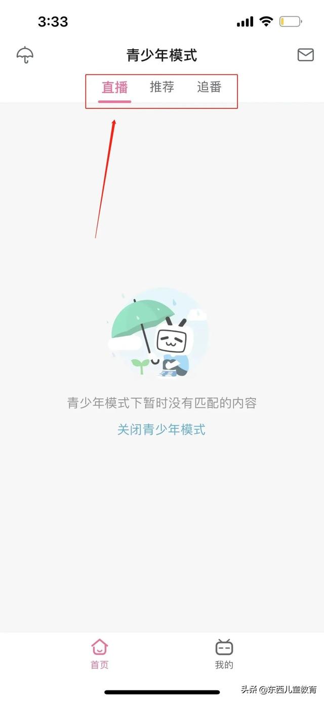 如果你不希望孩子看直播,那就别出现直播的页面啊,既然出现了直播的页面,那为什么什么内容都没有??