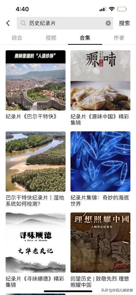 还可以看和“历史纪录片”相关联的博主,但是搜索到的博主的内容,只会显示系统认为适合孩子看的一部分内容。比如下面这个博主,搜索出来就只有一个视频。